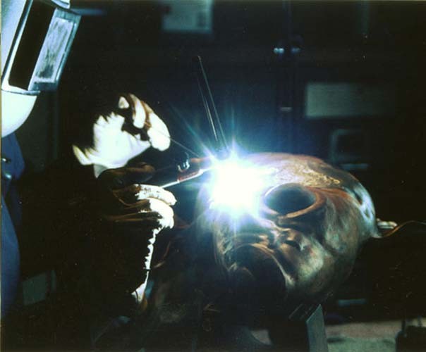 A stainless steel rod is welded into the structure of the fish during the early stages of the work. This is the fixing which allows the fish be suspended in space - and so apparently ‘dance’ on the tip of its tail.